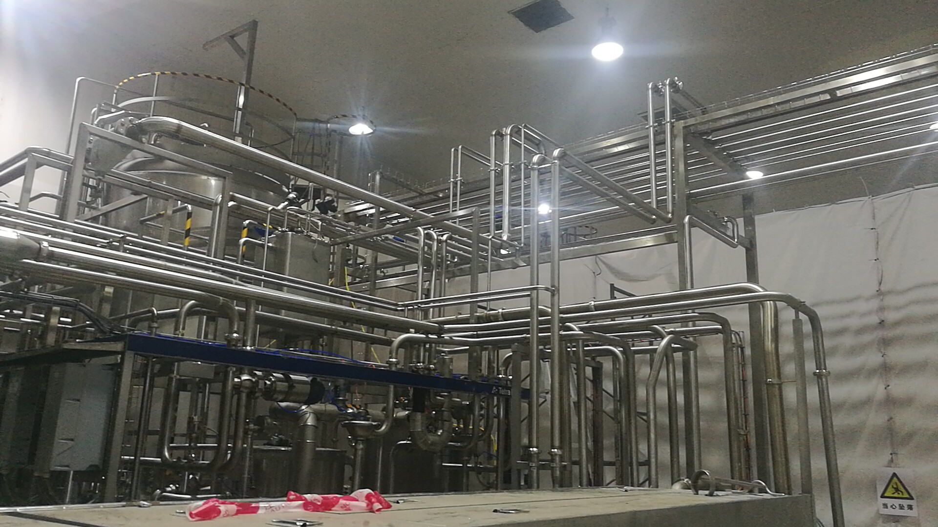 3、13T利樂UHT能源管路碰口完畢,焊接完成70%;網(wǎng)絡(luò)橋接布置完畢;